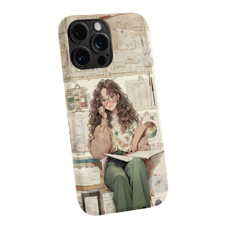 This bookshop babe phone case is basically a paperback daydream. Cozy sweater, paper stacks, soft colors — it screams indie bookstore vibes. You can hear the pages turning. Perfect for journalers, introverts, and chai-sippers with big imagination.