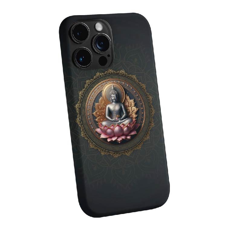 Some designs just feel… quiet. This phone case shows Buddha sitting on a lotus, gold patterns curling around him like they’ve been there forever. The colors are soft—easy on the eyes—but the detail? It’s the kind that makes you keep looking. Feels a bit like having a pocket-sized reminder to breathe. Perfect phone case for people who like carrying their calm with them.