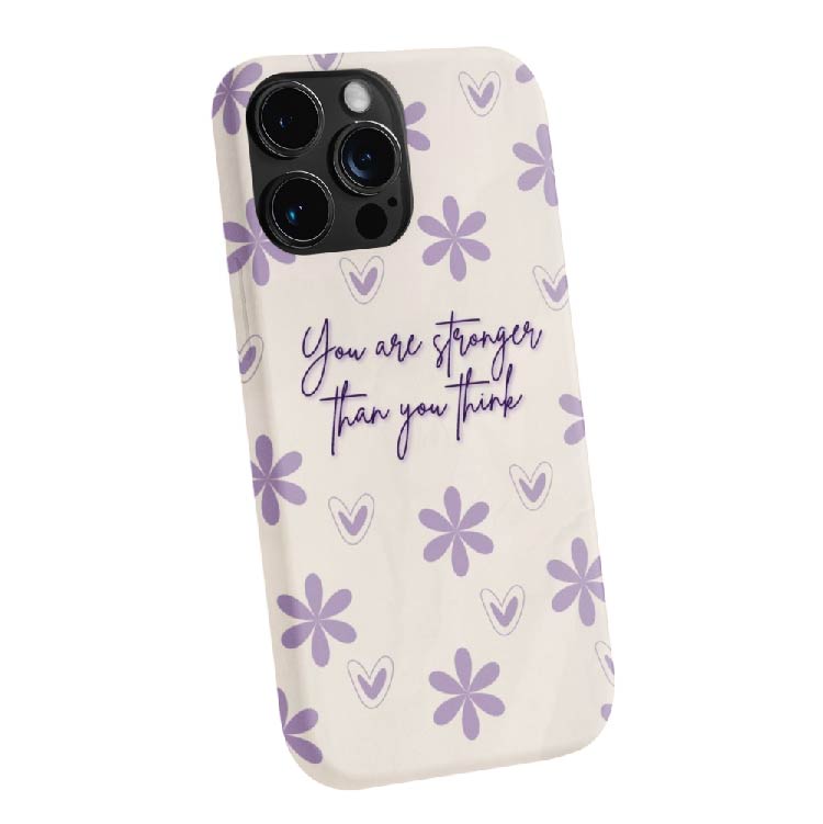 Soft? Sure. But fragile? Never. This one’s got lavender flowers scattered like wild phool in the hills, and a handwritten-style message that hits deep: you are stronger than you think. Lightweight but sturdy, it’s built like you — looks pretty, handles pressure. A phone case for those who wear strength like a second skin. A little reminder you’ll carry every day.