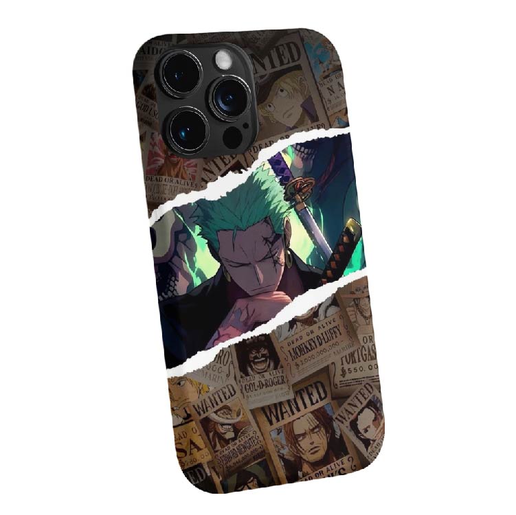 Three swords. One purpose. This Zoro phone case slices through a ripped manga poster background with green-haired attitude. For anime lovers who fight loyalty battles and flex silent strength like it’s a hobby.